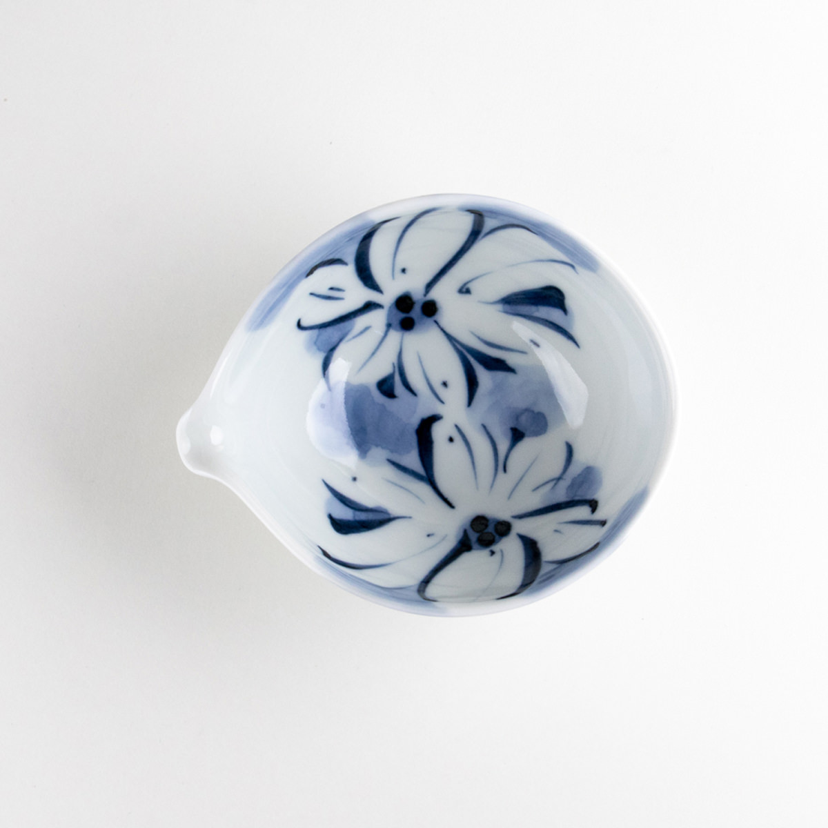 This small spouted bowl features a delicate floral design in traditional blue and white, hand-painted in the Arita-yaki style. Its spout makes it ideal for serving dressings, sauces, or broth, while it also works beautifully for small side dishes such as salads or seasoned vegetables. A refined balance of elegance and everyday functionality.