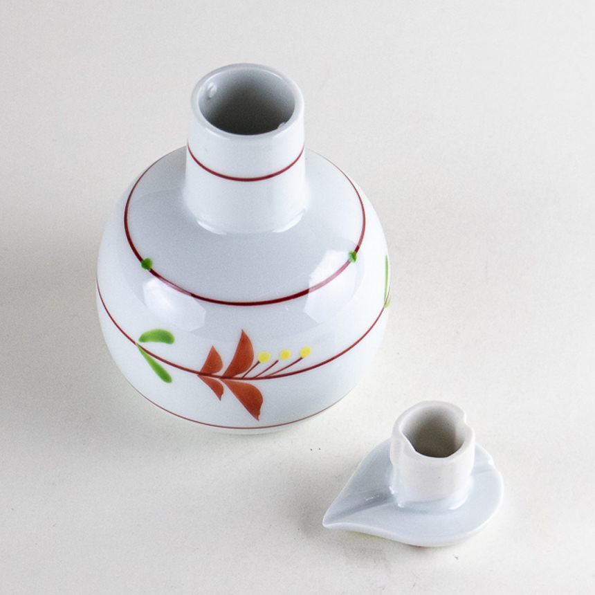 赤や緑、黄色の花模様が描かれた、可愛らしい印象の有田焼の醤油さしです。蓋付きで埃が入りにくく、使わないときも見た目が華やか。毎日の食卓をやさしく彩ります。
