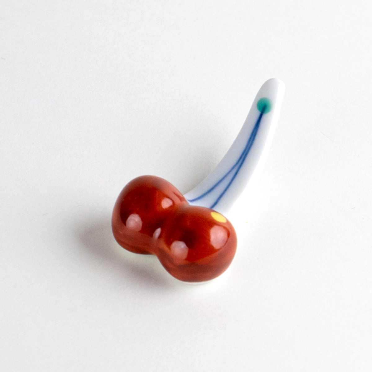 This Arita ware chopstick rest features a charming design of plump cherries and a delicately painted stem. Its playful yet refined look adds a cheerful touch to your table setting. A perfect accent for both Japanese and Western-style dining, and a delightful gift as well.