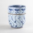 这款有田烧大茶杯饰以“割草花”纹样,柔和的曲线与细致的小花展现出清雅气质。蓝色的层次变化带来宁静柔和的印象,杯口与底部施以棕釉,增添稳重感与温润光泽。容量较大,与寿司店常见的大茶杯相似,可盛装充足的茶水,适合日常使用、待客或作为礼品赠送。