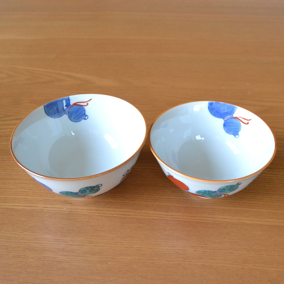 還暦祝い 無病息災を願った縁起物ギフト 有田焼 夫婦茶碗 飯碗 ペア 鍋島六瓢 メッセージカード付き・還暦のし付き 木箱入り