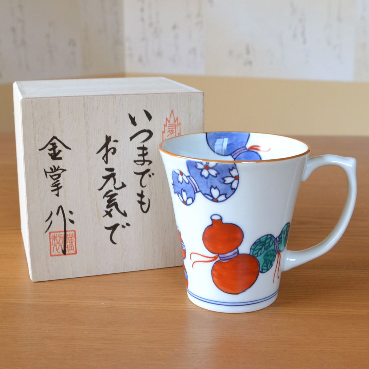 米寿 お祝い 贈り物 マグカップ 無病息災を願った縁起物ギフト 有田焼 鍋島六瓢 赤 米寿熨斗・メッセージカード付き 木箱入り [88be-175032]