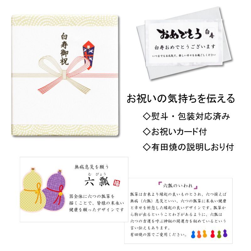 白寿 お祝い 99歳 無病息災を願った縁起物ギフト 有田焼 夫婦茶碗 飯碗 ペア 花六瓢 白寿熨斗・メッセージカード付き 木箱入り