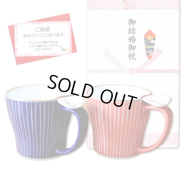 結婚祝い プレゼント 有田焼 マグカップ ペアー しら糸 赤 青 のし・メッセージカード付き [wed-336165]