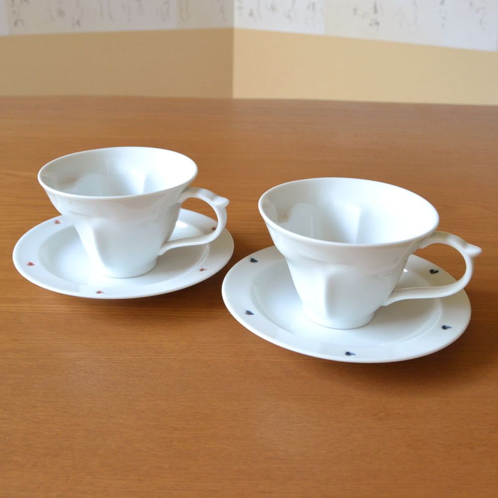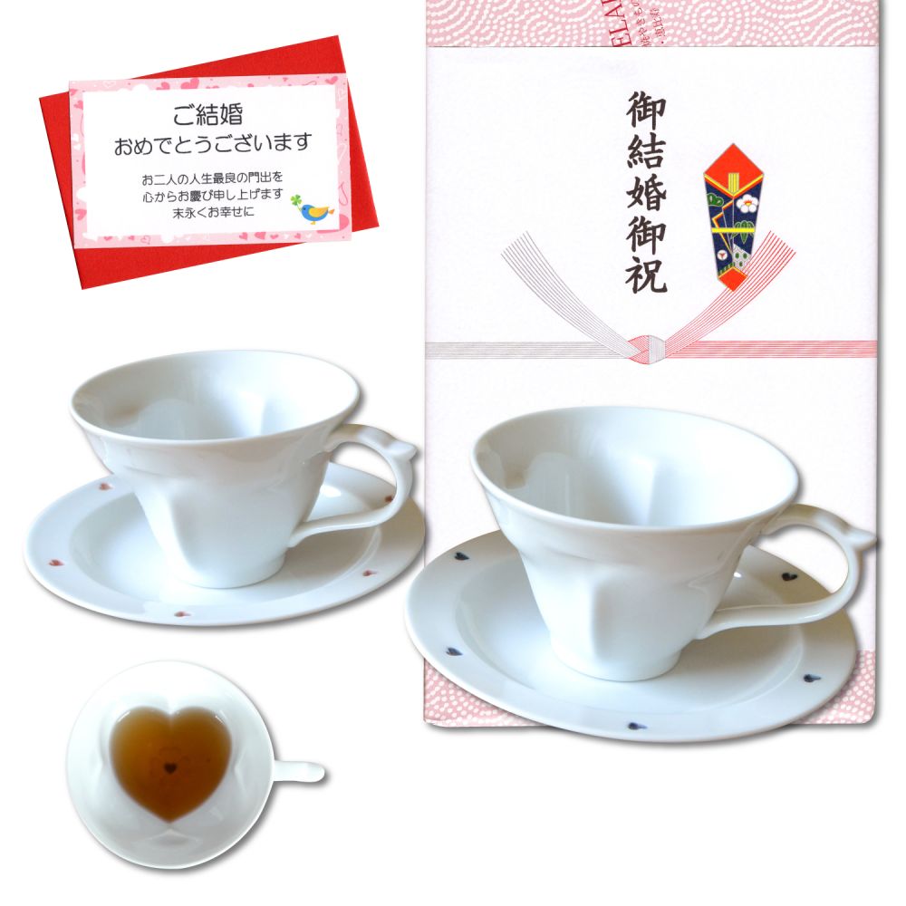 結婚祝い プレゼント 有田焼 ハートの形が浮かび上がる コーヒー カップ&ソーサー ペアー ハートinクローバー 青 赤 のし・メッセージカード付き