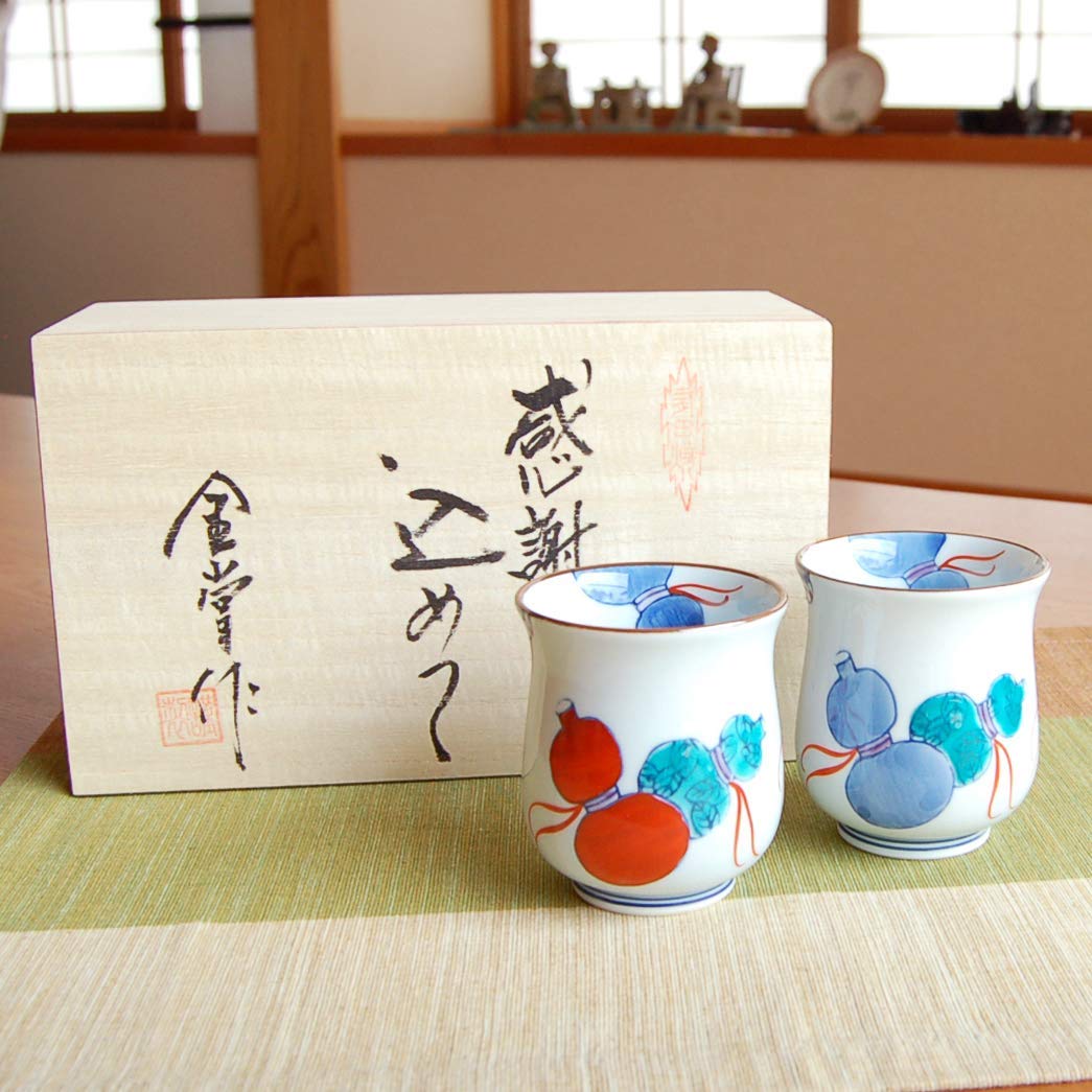退職祝い プレゼント 夫婦湯呑み ペアー 感謝を込めた退職ギフト 無病息災 鍋島六瓢 有田焼 日本製 贈答用 [kansya-175019]