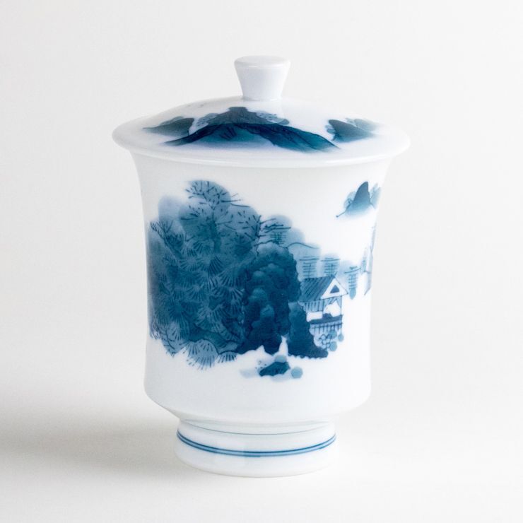 退職祝い プレゼント 湯呑み 感謝を込めた木箱入りギフト 有田焼 伊万里焼 畑萬陶苑 鍋島山水 蓋付き 湯のみ 大 [kansya-181048]