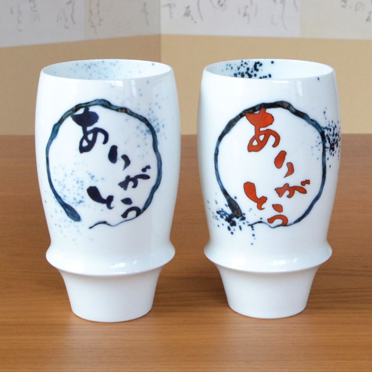 初任給 プレゼント 感謝を込めた木箱入りギフト 両親 おじいちゃん おばあちゃん ビールグラス ペアー 有田焼 ありがとう青/赤 ビアグラス 2個セット [kansya-sho-pair-107052]
