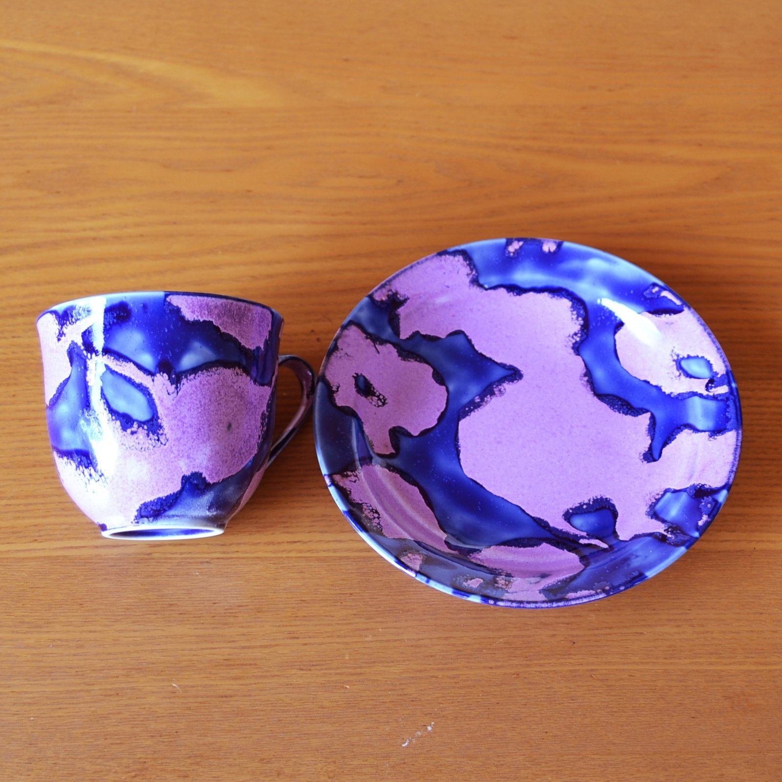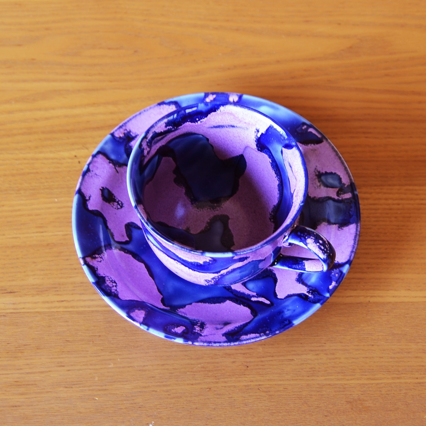 釉薬の表情を自在に引き出す作家によって生み出された、気品あるコーヒーカップ&ソーサー。手に取るたびに異なる景色が現れ、使う時間そのものが特別になります。一杯の珈琲とともに、器の表情をゆっくりとご堪能ください。