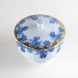 This lidded cup features an elegant chrysanthemum motif in indigo blue on fine white porcelain, accented with a refined gold rim. The raised design, created using the *Icchin* technique, adds soft dimension and gentle brilliance under the light. With its lid, it retains warmth and prevents dust, making it ideal for serving esteemed guests or for formal occasions. Perfect for green tea, sencha, or as a graceful vessel for small desserts.
