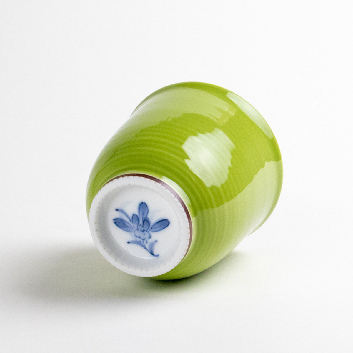 아리타·하사미 도자기의 ‘난의 향기(녹색)’ 찻잔은 밝은 연두색 외관과 내부에 그려진 섬세한 난초 무늬가 돋보입니다. 바닥 안쪽에도 꽃 그림이 있어, 보이지 않는 부분까지 미를 추구하는 일본의 장인정신이 느껴집니다. 상쾌한 색감이 녹차의 향을 더욱 돋워주며, 일상용은 물론 선물용으로도 훌륭한 품격 있는 찻잔입니다.