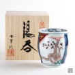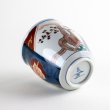 这是一款以古伊万里风格绘制的有田烧茶杯。杯身以手绘梅花与图案装饰,并辅以金彩点缀,华丽而不失雅致。虽为现代作品,却散发出古伊万里的传统之美。附有木盒包装,适合作为礼品或收藏。无论是日常品茶还是待客,都能增添一份典雅氛围。