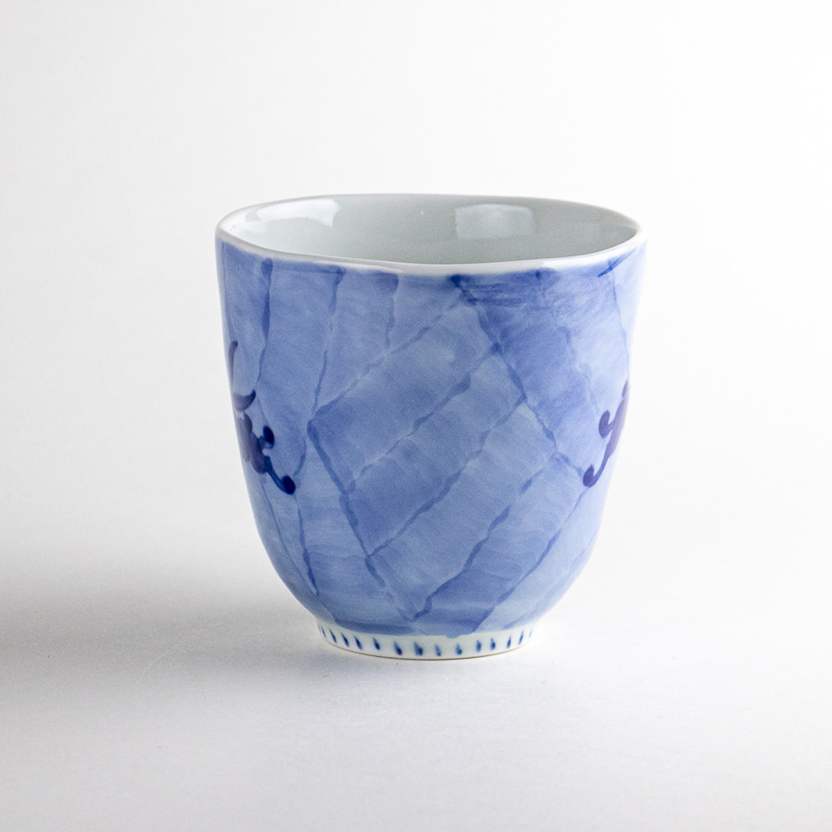 This Arita ware mug features an adorable rabbit leaping under the moonlight. The soft indigo painting is complemented by a handle shaped like bamboo, creating a traditional Japanese aesthetic. Perfect for tea, coffee, or any relaxing drink, this charming mug also makes a delightful gift.
