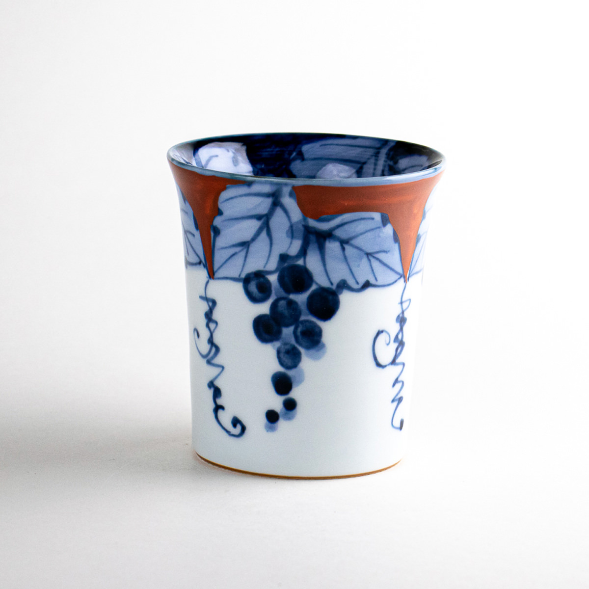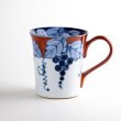 マグカップのフォルムが手に馴染みやすい大きめのカップです。手描きの技法で丁寧に仕上げられており、電子レンジ対応としての実用性も備えています。コーヒー、その他にもおすすめです。磁器製の商品です。