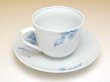 淡い青で描かれた鉄仙花の文様が上品な、有田・波佐見焼のコーヒー碗皿です。白磁の上に柔らかな染付の筆致で花と蔓が描かれ、落ち着いた中にも華やかさを感じさせます。毎日のコーヒータイムはもちろん、来客用や贈り物にも最適です。