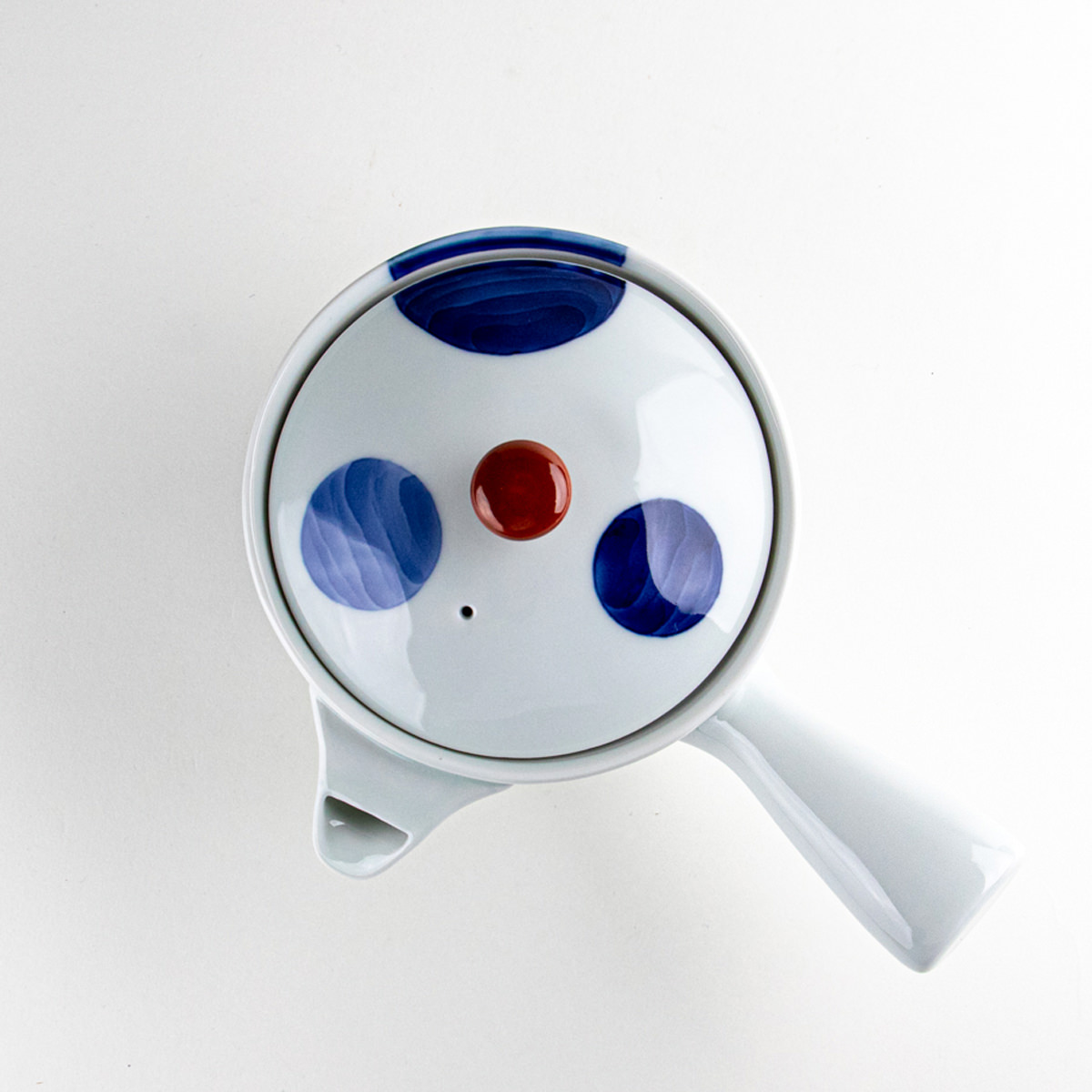 这款有田烧急须以醒目的靛蓝圆纹呈现出现代感。圆润的造型与沉稳的蓝色调为餐桌增添优雅的和风气息。配备不锈钢滤网,可顺畅过滤茶叶。兼具功能性与美感,为日常的品茶时光增添丰富体验。