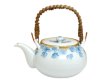 立体感のある一珍技法で表現された青い菊の花が、白磁に清らかに映える上品な土瓶です。口元にあしらわれた金彩が華やかさを添え、落ち着いた中にも気品が漂います。ステンレス製の網茶漉し付きで実用性も兼ね備えています。