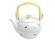あかね草柄の土瓶。白磁に映える赤と黄の花模様が、やさしく明るい印象を与えます。軽やかな絵付けとシンプルなフォルムで、日常使いにもぴったり。容量はたっぷり約740ml。持ち手には明るい色合いのビニール素材を使用し、お手入れも簡単です。