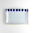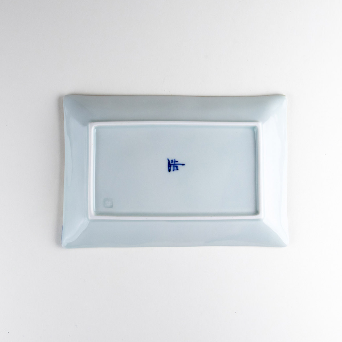 This small rectangular plate features a striking "tokusagata" (vertical stripe) pattern in deep indigo blue. The rhythmic brushwork adds visual charm and enhances the presentation of food. Ideal for serving grilled fish, vegetables, or appetizers, its versatile design complements both Japanese and Western table settings.