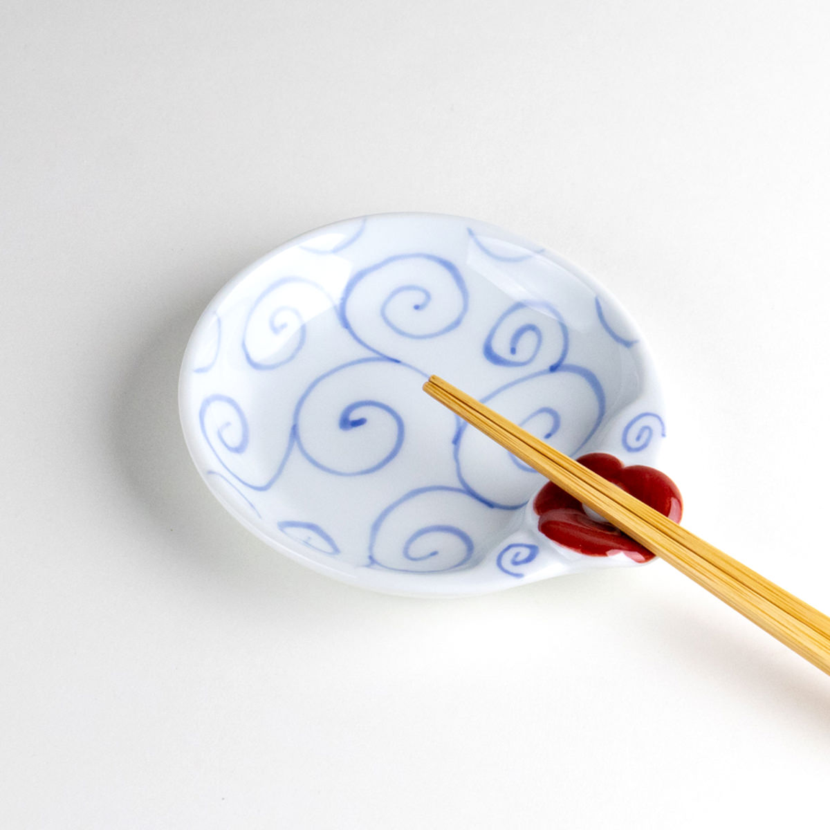 This charming small plate features an elegant swirl pattern and a raised camellia flower motif. The vivid red camellia adds a delightful accent to your table setting. Perfect as a soy sauce dish, condiment plate, or for serving small sweets. Also makes a lovely gift.