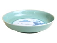 青磁中山水 8寸鉦鉢