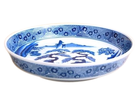 청화 산수화가 아름답게 그려진 아리타 도자기 대접입니다. 지름 27.3cm로, 여러 크기 중 하나입니다. 조림이나 볶음 요리, 지라시스시, 샐러드, 차가운 우동 등 대형 요리에 적합하며, 식탁에 일본 전통의 멋과 존재감을 더해줍니다.