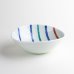 A modern small bowl decorated with vertical lines in blue, green, and red. The crisp white porcelain suits both Japanese and Western dishes. Ideal for serving side dishes, desserts, or fruits. A practical and stylish choice for everyday dining.