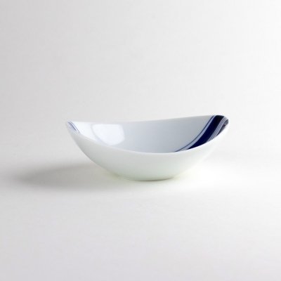 백자에 남색 줄무늬를 장식한 약간 불규칙한 타원형 소그릇입니다. 단순하면서도 움직임이 느껴지는 디자인으로 한식, 일식, 양식을 가리지 않고 식탁을 돋보이게 합니다. 간장종지나 양념그릇으로, 또는 견과류나 올리브와 같은 간단한 안주를 담기에 적합합니다. 아리타・하사미 지역의 고급 자기로 제작되어 일상용과 손님 접대용 모두에 추천드립니다.