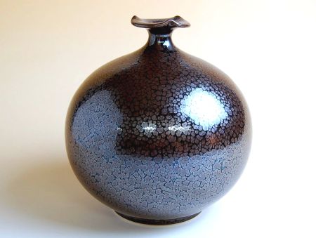 这款出自以釉药技艺闻名的有田烧真右卫门窑的小壶,采用典雅的“油滴天目”釉。黑色釉面上点缀着银色斑点,随光线变化而闪烁,宛如夜空或水面般梦幻。饱满稳重的造型,无论单独陈列,还是插放小型枝条或单枝花卉,都极具魅力。适合玄关、客厅、书房等各种和式或西式空间。