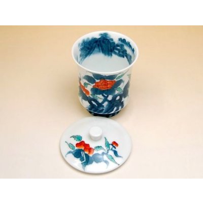 【名入れ・名前入り】色鍋島内山水岩牡丹(小)蓋付湯呑