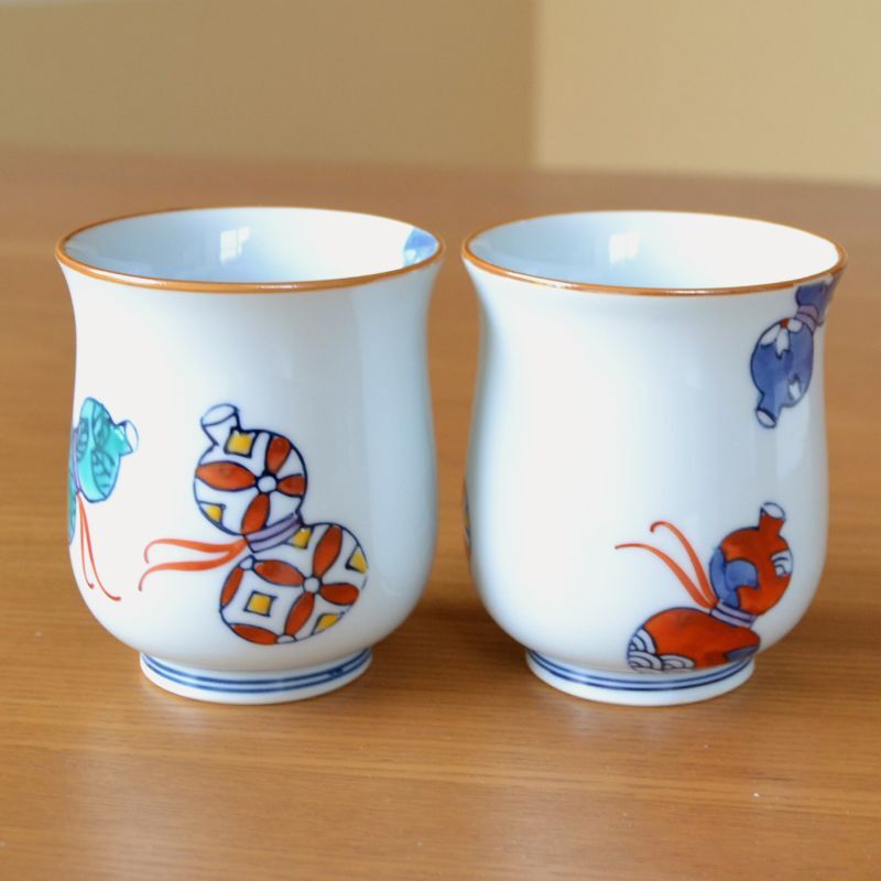 白寿 お祝い 99歳 無病息災を願った縁起物ギフト 有田焼 湯呑み ペア 夫婦湯呑 鍋島六瓢 白寿熨斗・メッセージカード付き 木箱入り