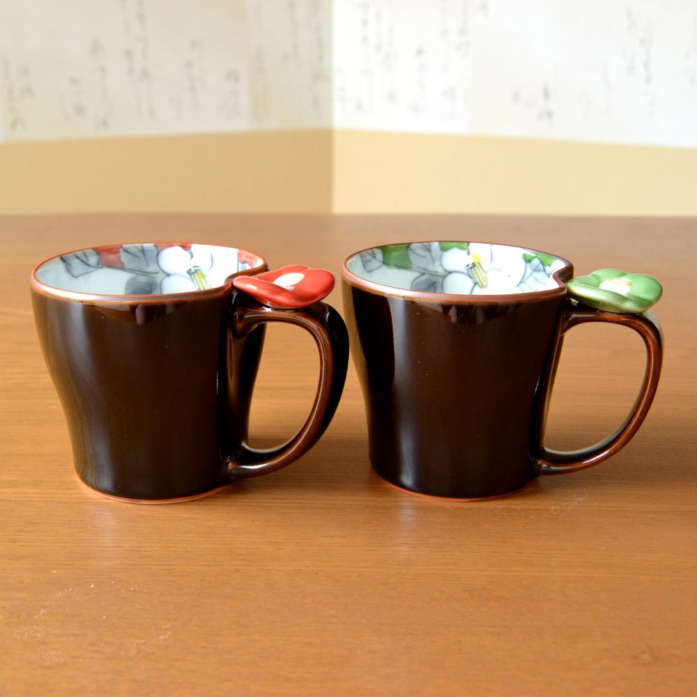 名入れ 結婚祝い プレゼント 有田焼 マグカップ ペアー 花絵蒔 赤・緑 のし・メッセージカード付き