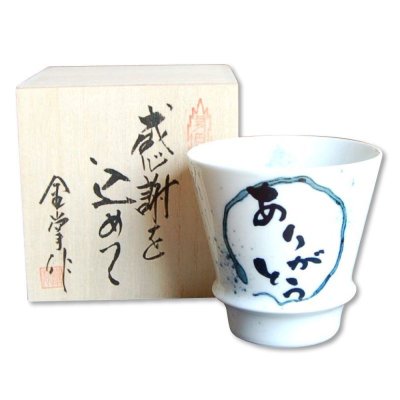 退職祝い プレゼント 焼酎グラス 感謝を込めた退職ギフト ありがとう青 有田焼 日本製 贈答用