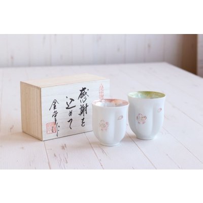 退職祝い プレゼント 夫婦湯呑み ペアー 感謝を込めた退職ギフト 桜がうかぶ桜湯飲み 舞さくら 有田焼 日本製 贈答用