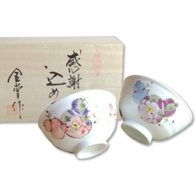 退職祝い プレゼント 夫婦茶碗 飯碗 ペアー 感謝を込めた退職ギフト 無病息災 花六瓢 有田焼 日本製 贈答用