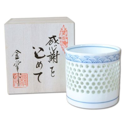 退職祝い プレゼント ロックグラス ウイスキー 焼酎 有田焼 透かし彫り技法 水晶彫青海波 ロックカップ