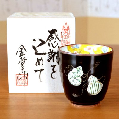 退職祝い 男性 プレゼント 無病息災を願った縁起物ギフト 有田焼 湯呑み 六瓢色彩 緑 感謝を込めた木箱入り