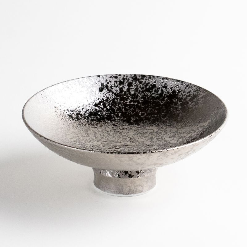 ◇ 高級感がある銀色(シルバー)の有田焼 盃です。直径10cm のしっかりとしたサイズ感がお祝いの品にぴったり。