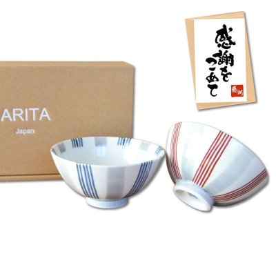 お礼の品 ギフト プレゼント 退職 栄転 転勤 卒業 感謝をこめて カード付き 夫婦茶碗 ペア 飯碗 有田焼 いなせ ギフト箱入り [kansya-pair-313072]