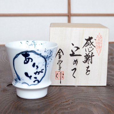 初任給 プレゼント 感謝を込めた木箱入りギフト 両親 おじいちゃん おばあちゃん 焼酎グラス 有田焼 ありがとう青 贈答用