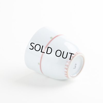 아리타·하사미 도자기의 ‘유메후쿠로(夢ふくろう·적색)’ 찻잔은 컵 안쪽에 귀여운 부엉이 그림이 그려진 유쾌한 디자인이 특징입니다. 외부는 연한 하늘색 바탕에 빨간 줄무늬와 초록색 점이 포인트로 들어가 밝고 경쾌한 인상을 줍니다. 차를 마시다 보면 부엉이가 모습을 드러내어 즐거움을 더해주며, 일상용은 물론 선물용으로도 좋습니다.