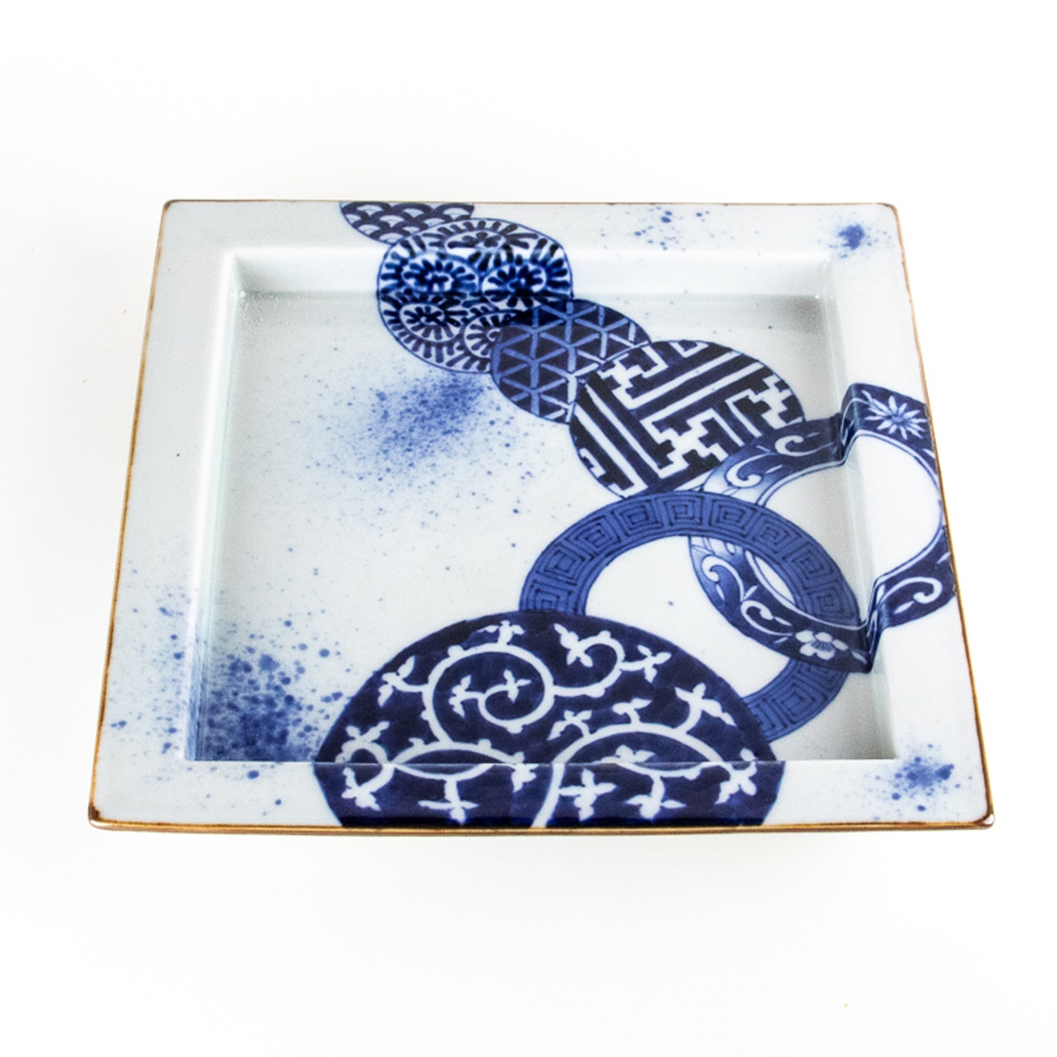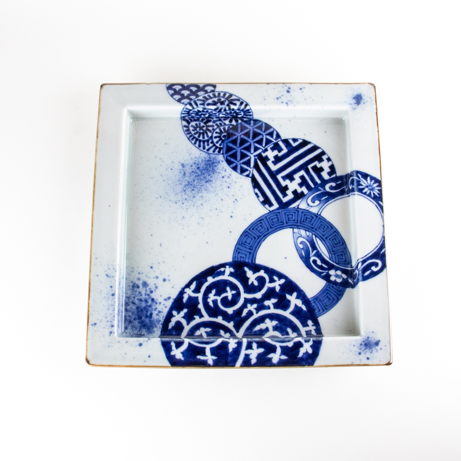 古染丸繋ぎ紋 正角盛皿 [189070]