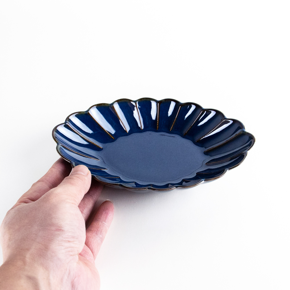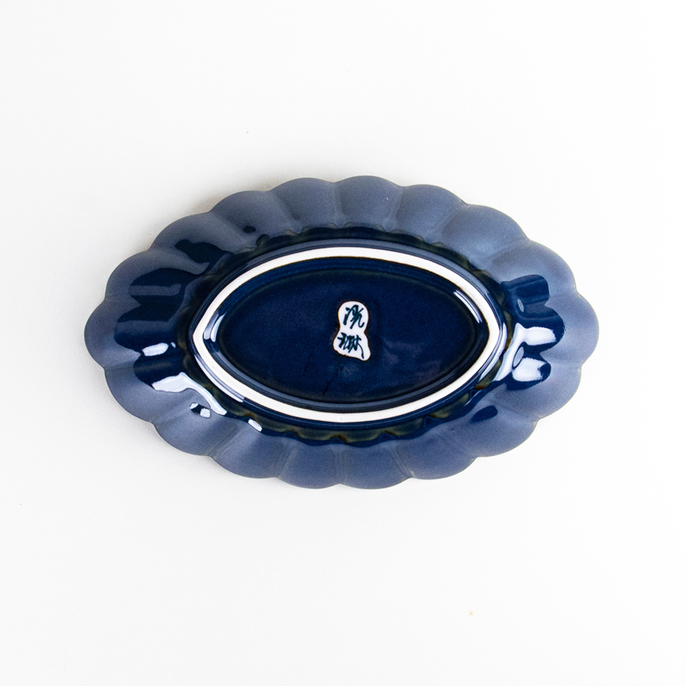 群青 菊彫楕円鉢 [325078]