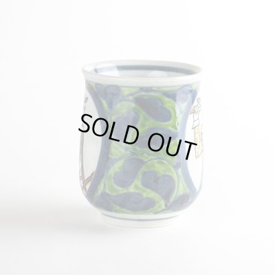 This Arita ware mug, crafted by the renowned Enzaemon kiln, revives the charm of antique ceramics with a modern touch. Featuring a whimsical depiction of a Nanban figure in green tones, it adds a playful accent to your daily life. Ideal not only for coffee or tea but also as a practical soup cup.