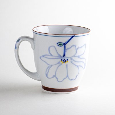 柔らかな青で描かれた花模様が清楚な印象を与えるマグカップです。白磁の美しさと上品なデザインが調和し、日常使いから来客用まで幅広く活躍します。コーヒーや紅茶、ハーブティーなどをゆったりと楽しむひとときにぴったりです。
