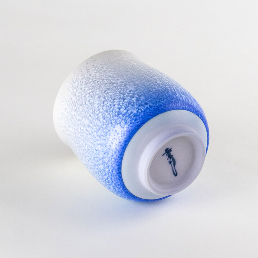 This Arita ware teacup from the renowned Shinemon Kiln features the refined “Indigo Waterdrop” design, where the glaze transitions gracefully from pure white to deep indigo. The delicate texture, reminiscent of ripples on calm water, conveys a sense of tranquility and clarity. Its finely grained surface feels pleasant in the hand and enhances the color of green tea. Presented in an elegant wooden box, it is perfect for gifting or refined hospitality.