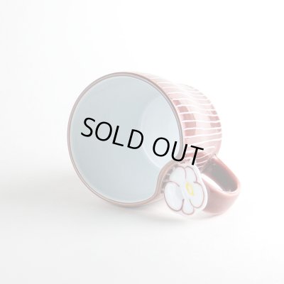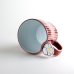 This Arita/Hasami ware porcelain mug features a warm red background accented with elegant white vertical stripes. The handle is adorned with a three-dimensional camellia flower, adding a touch of charm and beauty. Its calm yet distinctive design makes it perfect for enjoying coffee, tea, or any warm drink. A delightful piece for everyday use, and an excellent choice as a thoughtful gift.