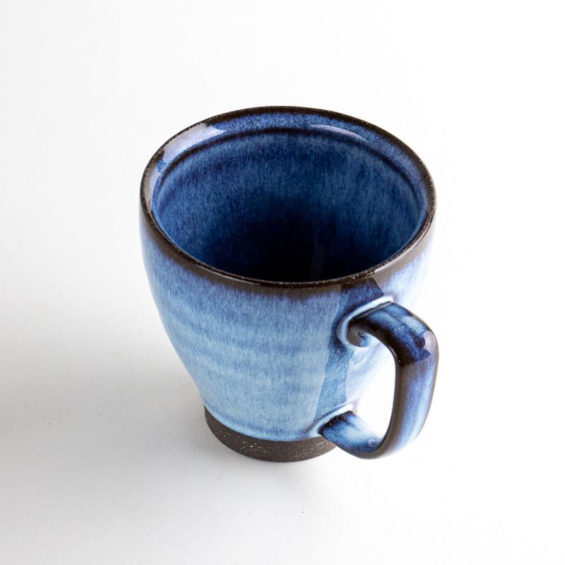 深みのある青のグラデーションが美しい、有田・波佐見焼の陶器製マグカップです。焼成の加減によって一つひとつの色味に個体差があり、手仕事ならではの表情を楽しめます。存在感のある色合いは、コーヒーや紅茶、ホットチョコレートなど、温かい飲み物をより一層引き立ててくれます。日常使いにはもちろん、贈り物にも喜ばれる一品です。