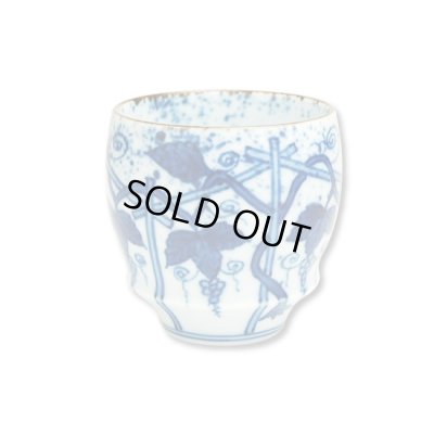 This sake glass features a calming indigo grapevine motif, evoking a sense of traditional elegance. Its rounded form fits comfortably in the palm, making it ideal for savoring the rich aroma of sake. Slightly larger in size, it serves beautifully as a guinomi for chilled sake, adding charm to your dining table. Perfect for entertaining guests or enjoying a special moment.