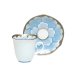 연한 하늘빛과 백색의 그라데이션 위에 플래티넘 테두리가 고급스럽게 빛나는 아리타야키 데미타스 세트입니다. 안쪽에는 입체적인 모란 무늬가 새겨져 있어, 꽃잎 속에서 커피를 즐기는 듯한 우아함을 느낄 수 있습니다. 작은 사이즈로 에스프레소나 진한 커피를 즐기기에 완벽하며, 품격 있는 시간을 연출합니다.
